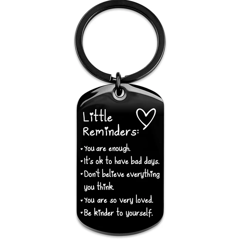 【Durable and Inspirational】: Crafted from high-quality stainless steel, our Little Reminders Keychain is not only sturdy and durable but also carries a powerful message of affirmation and inspiration. With clear engraved text that reads "You Are Enough..," this keychain serves as a constant reminder to stay positive and confident in any situation.